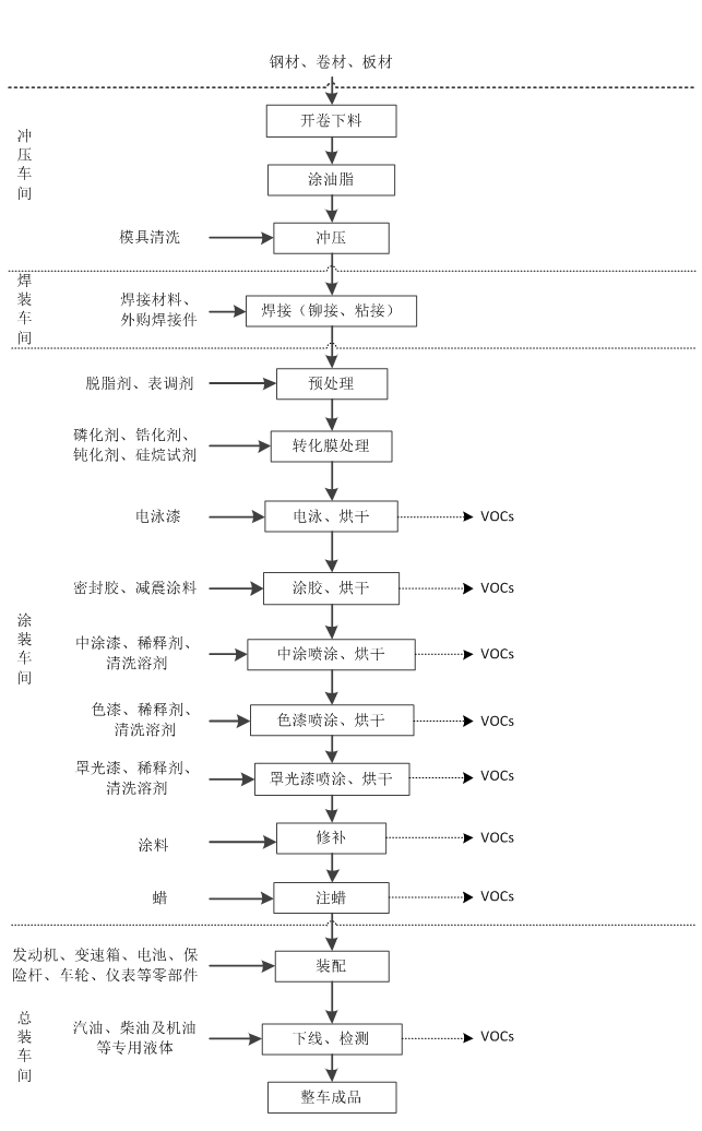 汽車整車制造行業VOCs產污環節及排放形式
